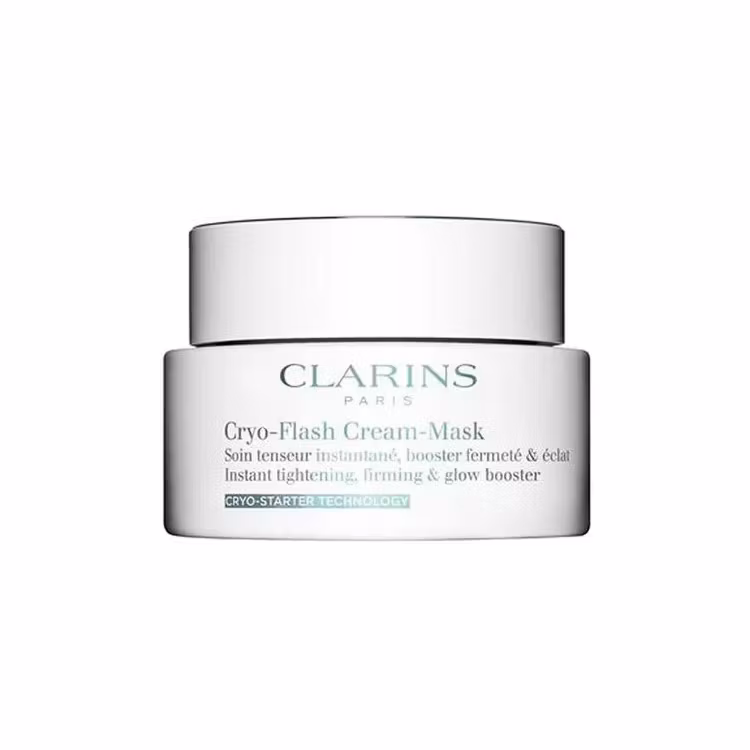 Cryo-Flash Cream-Mask är en högpresterande och anti-aging ansiktsmask som är inspirerad av kryoterapi (kylbehandling) och skapad med hjälp av Clarins expertis. Du får en synbar effekt redan efter första appliceringen – huden känns lyft, fast och strålar av hälsosamt glow. Den mjuka, ultrafräscha och blågröna texturen glider likt is på huden och ger en intensiv och omedelbar kryoeffekt.